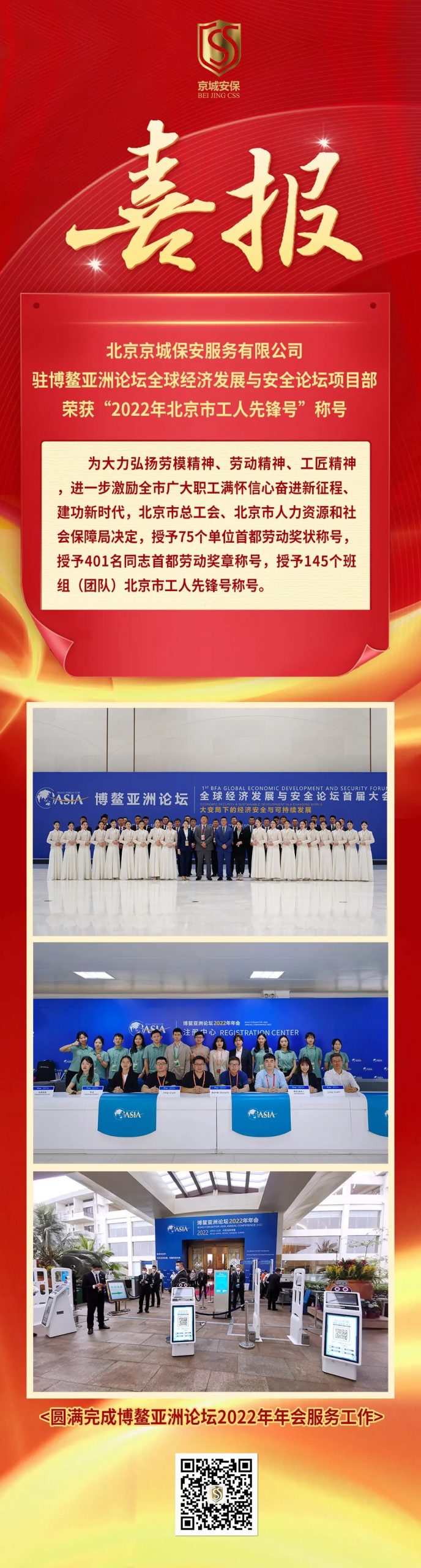 喜報(bào)|京城駐博鰲亞洲論壇全球經(jīng)濟(jì)發(fā)展與安全論壇項(xiàng)目部榮獲“2022年北京市工人先鋒號”稱號 閱讀人數(shù): 351 相關(guān)內(nèi)容 京城頭條丨再獲殊榮!京城安保以榮譽(yù)礪擔(dān)當(dāng) 以實(shí)干筑平安 1月29日,北京市公安局治安管… 培訓(xùn)演練丨淬煉安保鐵軍 牢筑平安防線——京城安保2025年度練兵考核圓滿收官 2025年,京城安保隊(duì)伍堅(jiān)決貫… 京城頭條丨京城安保集團(tuán)召開2026年元旦節(jié)前安全工作專項(xiàng)部署會 為深入貫徹落實(shí)北京市公安局治安…
